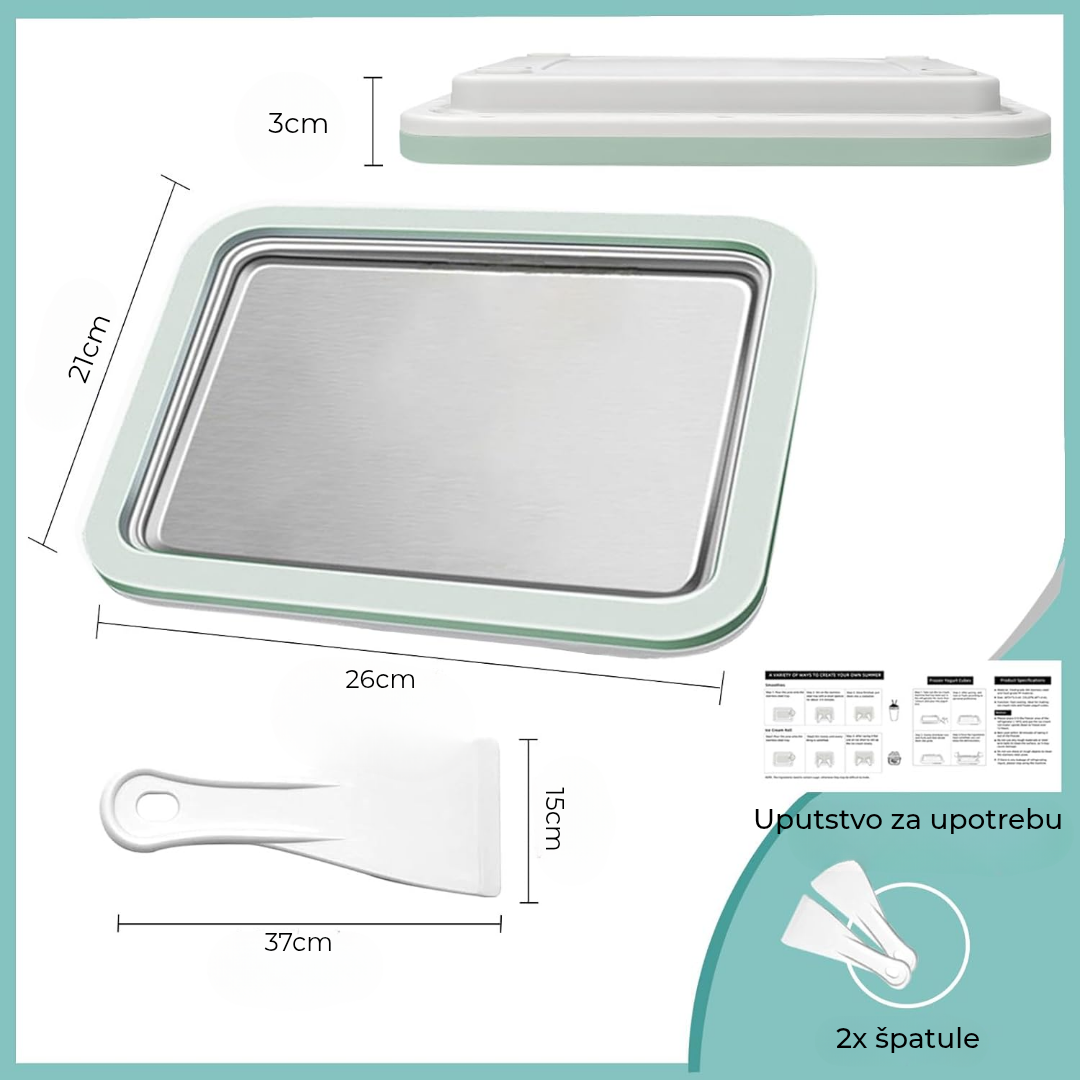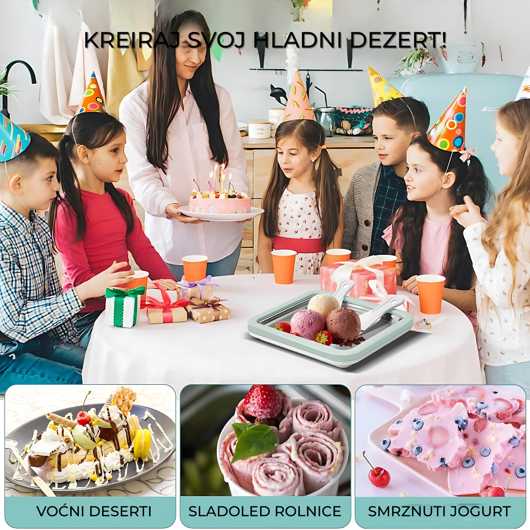 Zaboravite na komplikovane aparate i dugotrajno čekanje! Naš aparat za sladoled sa pločom od nerđajućeg čelika napraviće vam voćni sorbe, rolnice sladoleda i smrznuti jogurt brzo, lako i zabavno – i to bez potrebe za strujom!