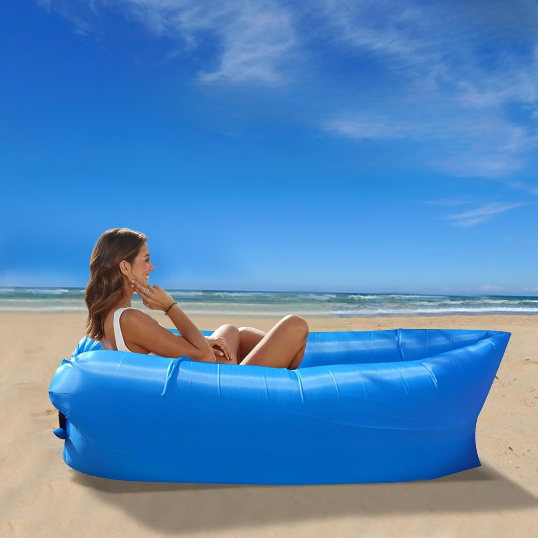 Zamislite da se opuštate na plaži, u planini, pored bazena ili u dvorištu — bez potrebe za prostirkama, pumpama ili tegljenjem glomaznih stolica.