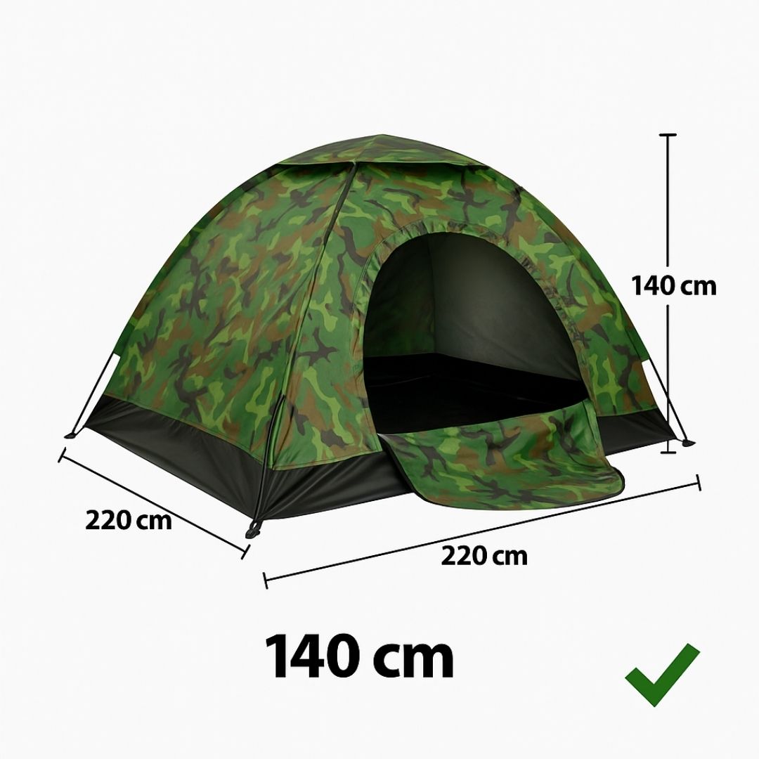 ✅ Dužina: 220 cm ✅ Širina: 220 cm ✅ Visina: 140 cm Savršen za 2 do 3 odrasle osobe + oprema (rančevi, prostirke, flaše, svetiljke itd.)