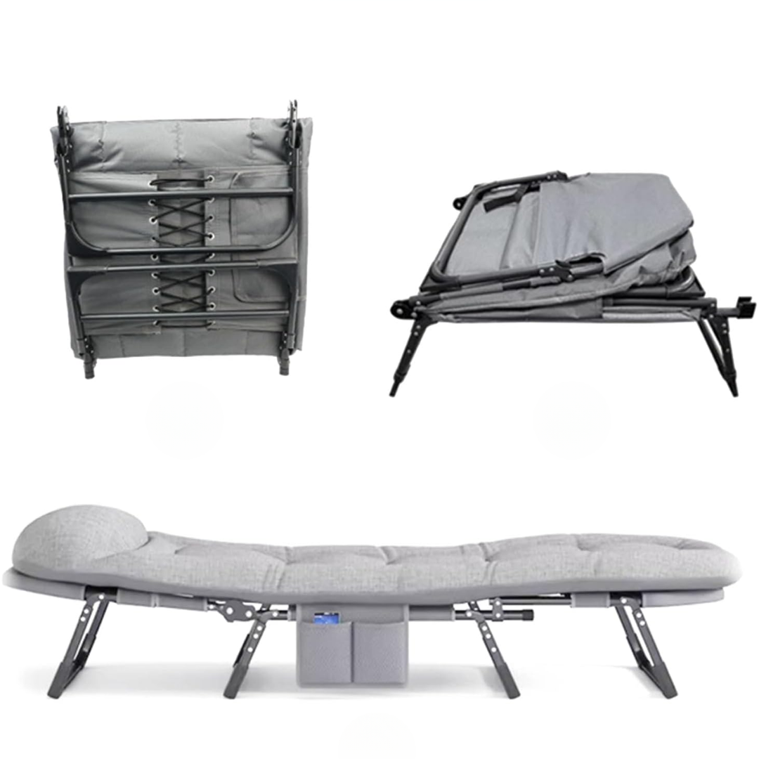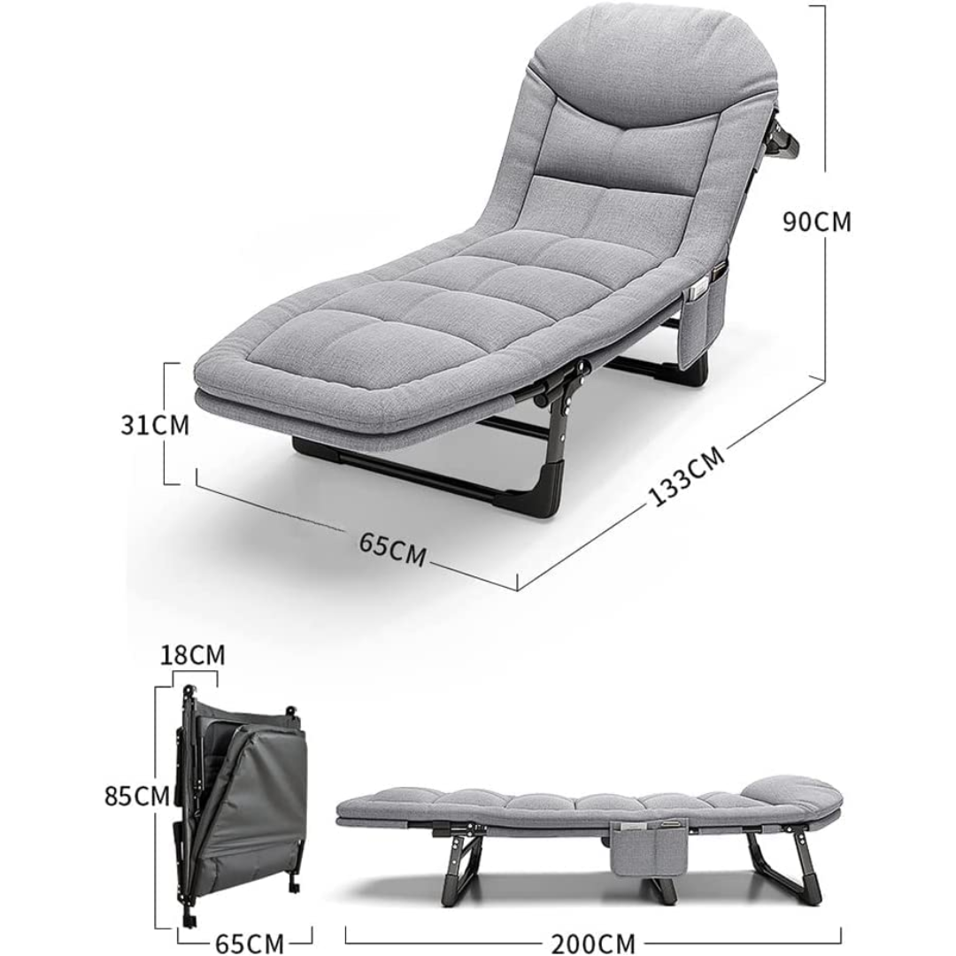 Bez obzira da li ideš na kampovanje, uživaš pored bazena ili ti je potreban dodatni krevet za goste, sklopivi krevet je savršeno rešenje za maksimalnu udobnost i praktičnost. Dizajniran sa 6 podesivih položaja, omogućava ti da sediš, odmaraš ili potpuno legneš, pružajući podršku telu i smanjujući pritisak na mišiće.