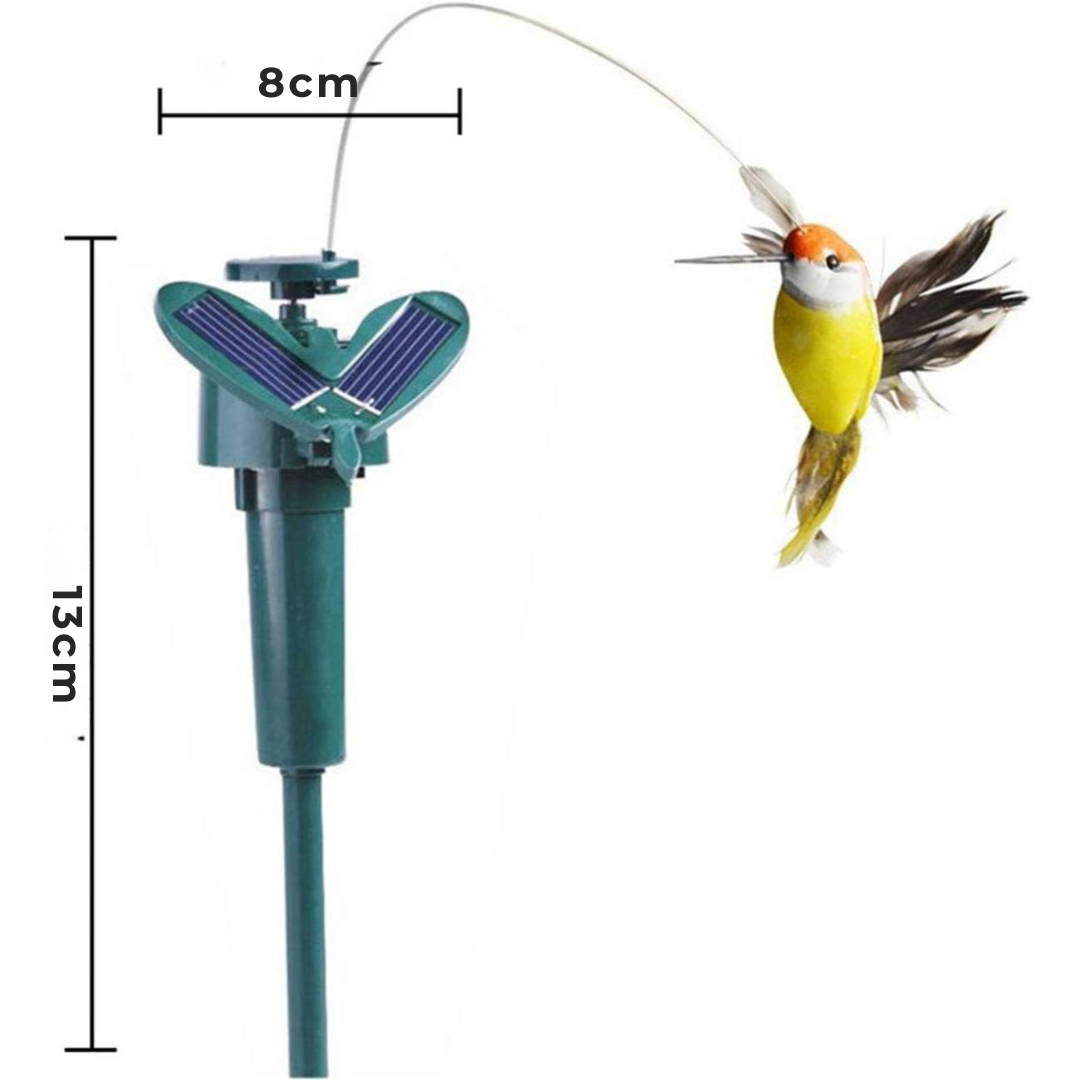 Solarni panel na vrhu ptice skuplja energiju tokom dana. Kada padne mrak, automatski se pali LED osvetljenje i baterija počinje da napaja nežno treperenje koje imitiraju pticine pokrete. U oblačnim uslovima ili tokom noći kada nema direktne svetlosti, baterijski mod omogućava da ptica nastavi sa radom, bez prekida.